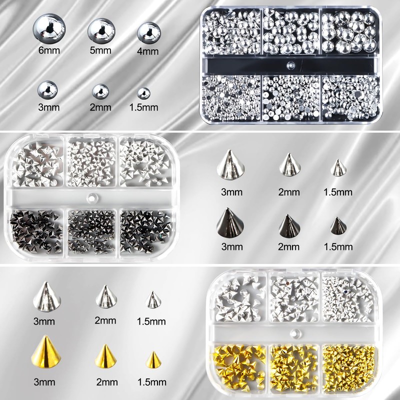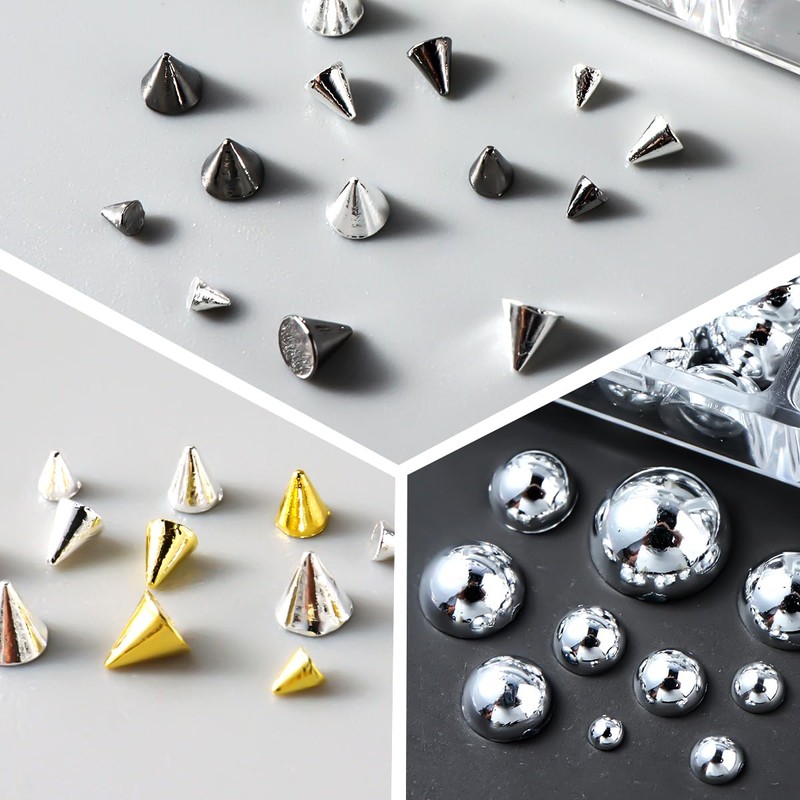 - Wide Application: These multi-colour and multi-sizes 3D mini metal rivet studs and steel balls, to craft fashionable 3D manicures. You can also use it to decorate your phone case, clothing, shoes, and other DIY accessories. Suitable for use at various holiday parties such as Halloween and music festivals.