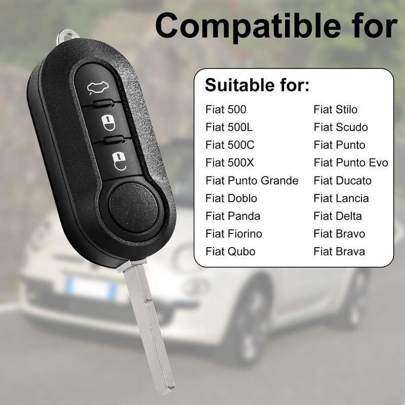 • Wide compatibility - This 3-button car key shell replacement is compatible with Fiat 500, 500L, 500C, 500X, Ducato, Doblo, Panda, Punto, Punto Evo, Punto Grande, Lancia, Delta, Bravo, Brava, Fiorino, Qubo, Scudo, Stilo, etc