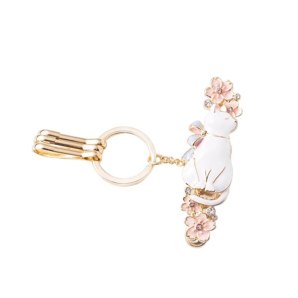 3 carat Women's Bag Key Clip, Cherry Blossom and Cat, Key Clip, 2 Seconds to Find Your Keys, Stylish, Popular, Gift, White Cat
