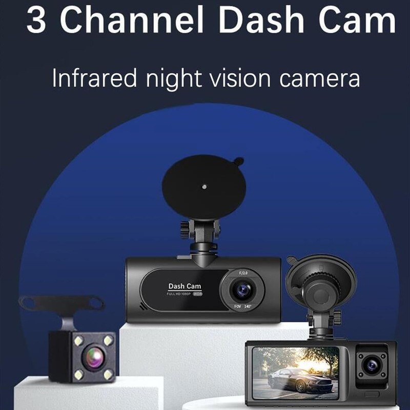 3 Channel Car Dash Cam, 1080P Front Rear Inside Car Camera, Night Vision, Parking Monitoring, Loop Recording, Reverse Image Camera, Support 64GB