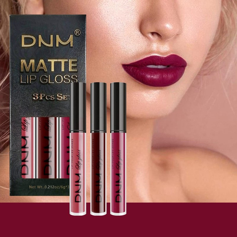3 Colours Matte Liquid Lipstick Waterproof Durable Liquid Lip Gloss Lip Gloss Set (#06)