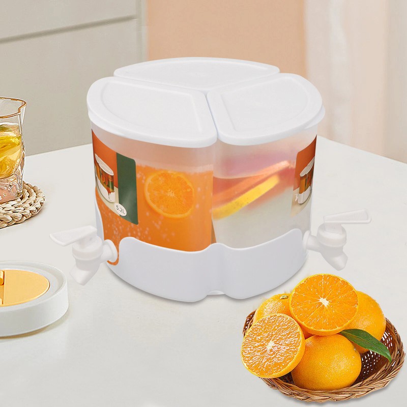 Large Capacity: The beverage dispenser is composed of three containers, with a total capacity of 5.2L/1.3galon, so you can put three different kinds of drinks at one time to fully meet your needs.