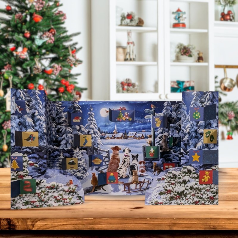 3 D Dogs Watching Santa Waiting for Santa 358 x 245 mm Caltime Traditional Advent Calendar, Multi