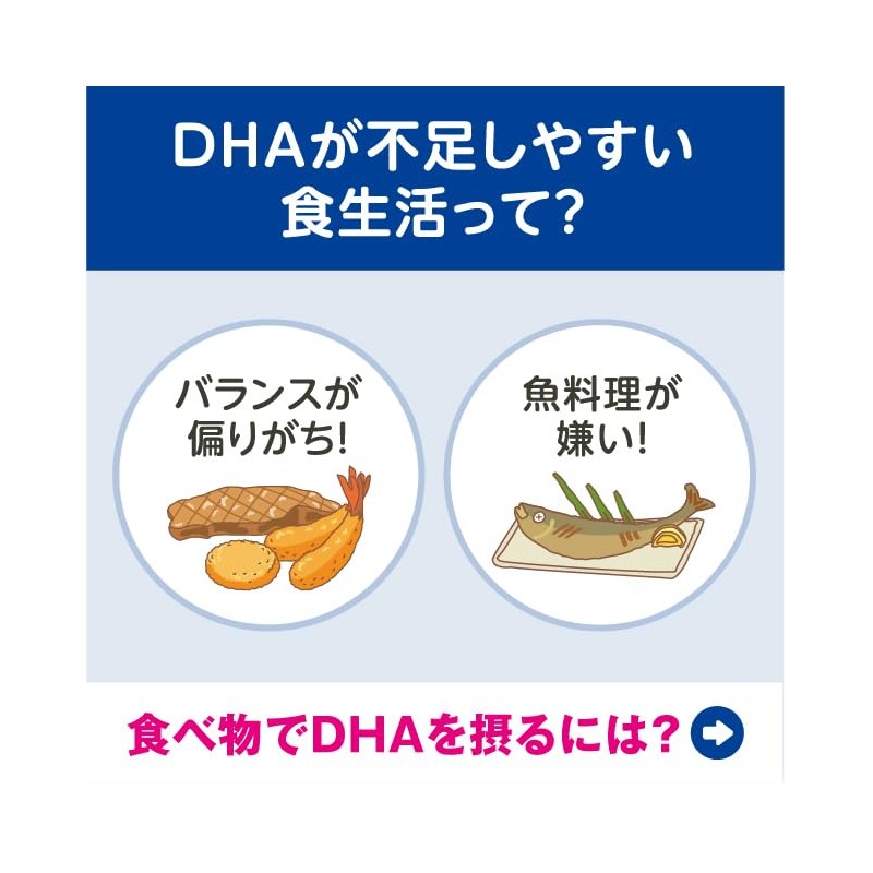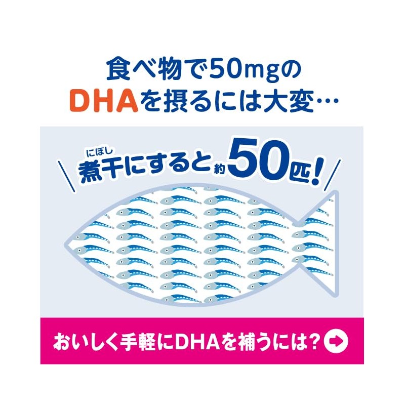 • DHAは、魚の脂肪に含まれる不飽和脂肪酸。食生活が偏りがちな方や、勉強や仕事をがんばる方をサポートします。