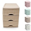 3 Drawers Plastic Desktop Storage Unit with Drawers, Stationary Arts Drawer Desktop Tabletop Organiser Storage Tower Unit for Office Bedroom Garage (17 x 13.5 x 17cm - Rattan Taupe)