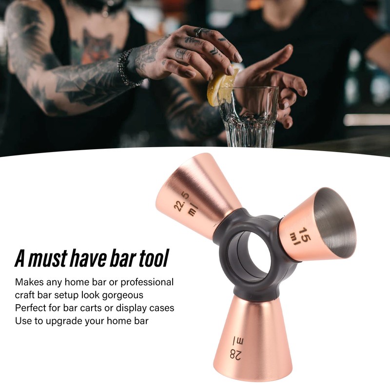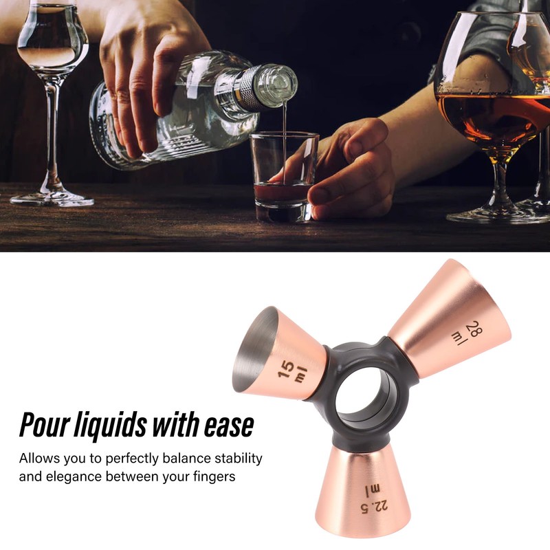 3 End Bar Measuring Cup 304 Stainless Steel Ergonomic Wine Measuring Device for Wine Mixing Tools Copper Plated