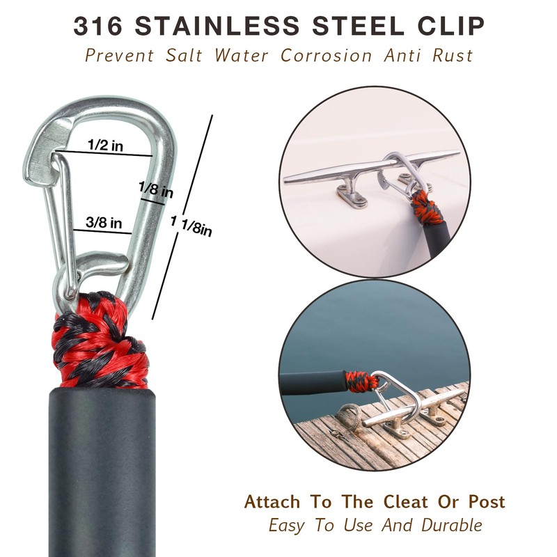 - 4.Quick Docking:The 316 Stainless Steel Snap Even Without Any Experience Can Be Quickly Docked In 7 Seconds。 The Dock Ropes Are Perfect For Kayak, Jet Ski, Pontoon, Seadoo, Canoe, Power Boat, Waverunner, Etc.