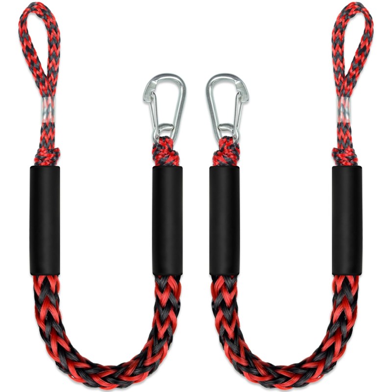 3 Feet Bungee Dock Line Boat Accessories 2pcs Fender Lines with 316 Stainless Clip for Boat Fender for Mooring for Jet Ski, Seadoo, Yamaha (Red+Black, 3 Feet)