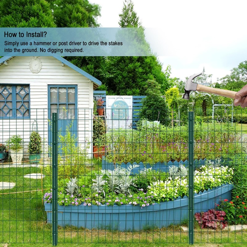 - Easy Installation, No Tools Needed: No digging or concrete required! Ideal for DIY projects and temporary setups. Each post with tabs and holes for fixing, the anchor plate helps to provides support and stability. You can use a hammer or post driver to make the metal fence below ground level.