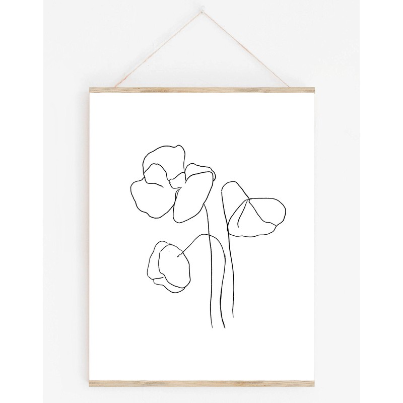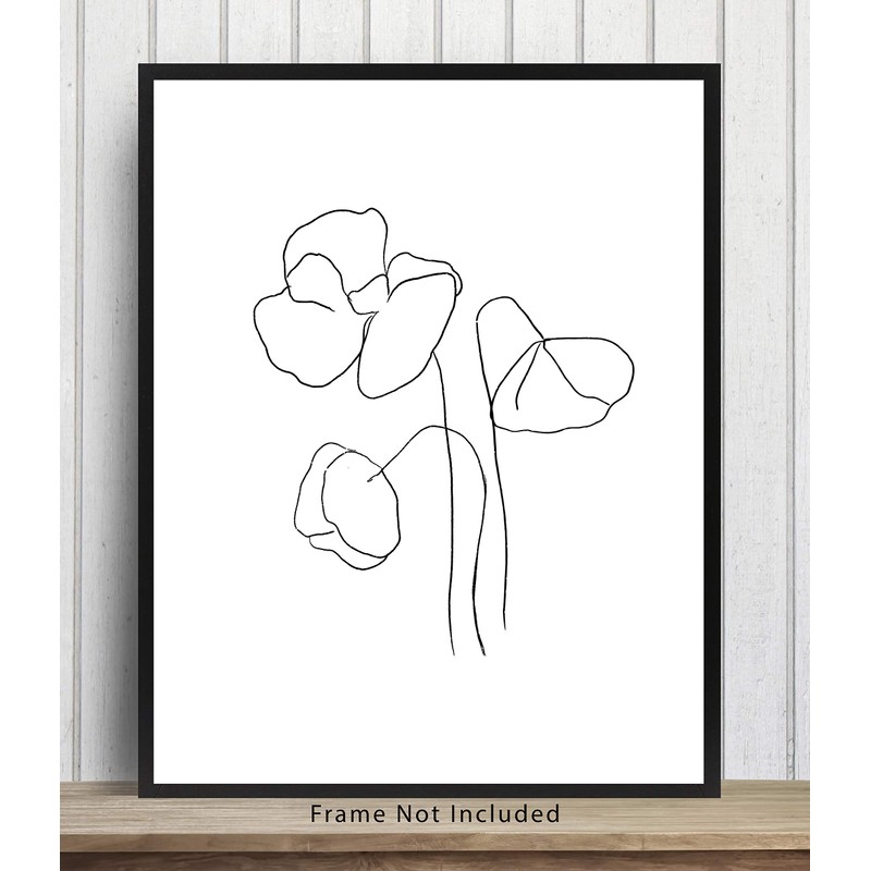 3 Flower Stems Line Art Wall Art. 11x14 UNFRAMED, Minimalist Black & White Botanical Decor - A Clean, Contemporary and Modern Sketched Print.