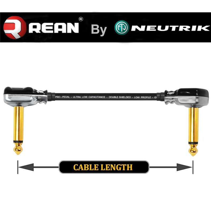 - The brand of connector we used for this custom cable assembly: Neutrik-Rean RP2RCF-B-D; offered by Rean a Neutrik AG Company is a professional-grade, 2-Pole, Pancake Style, ¼ Foot (6.35mm) TS plug. Contacts are plated with Gold and sports a Black & Nickel robust die-cast shell. Has an internal non-conductive flap to prevent shorting. The smaller than regular pancake plug design will allow efficient use of pedal board real estate.