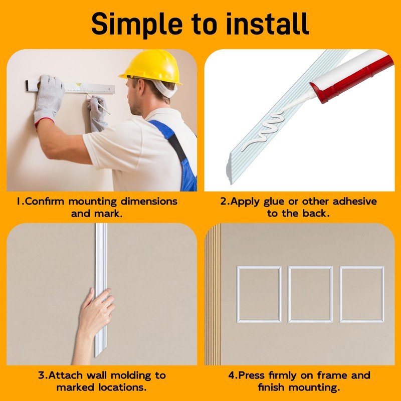 - Easy Installation: Our wall trim includes a 3-frame assembly, pre-cut wall membrane, and is easy to install, simply apply construction adhesive to the back of the molding trim, then place it on the wall in sequence and press it down tightly, and it will be installed in minutes. Ideal for the novice DIYer looking to remodel their space.