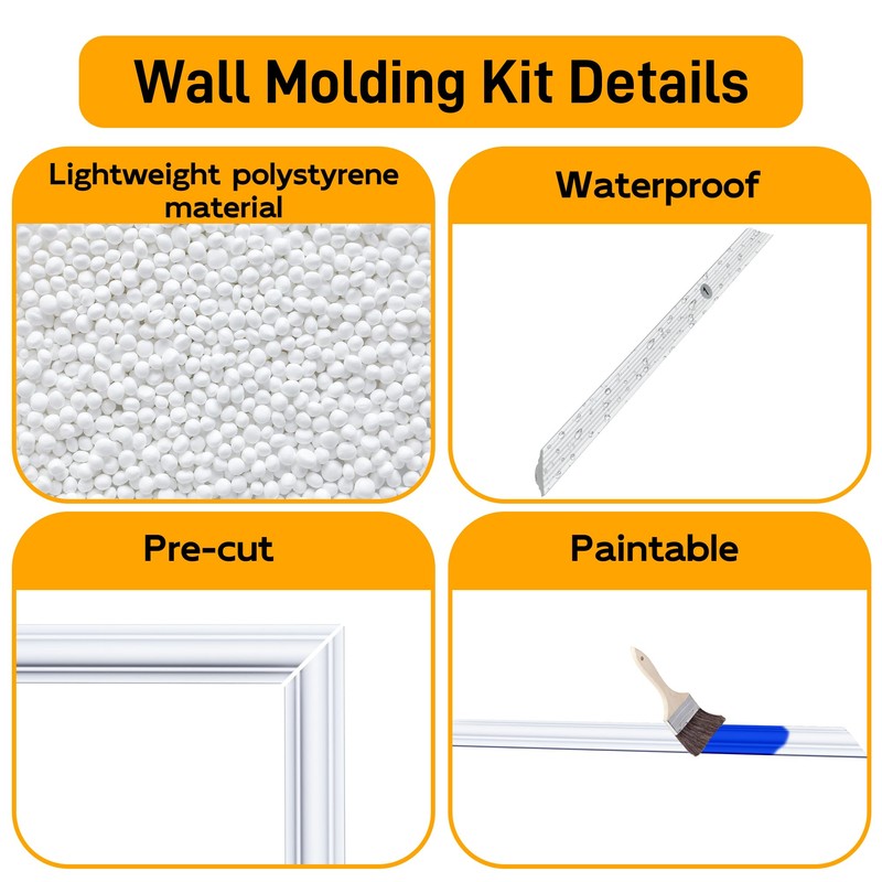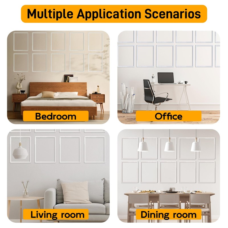 - Widely Applied: Upgrade drywall, plaster, tile and even furniture with our wall molding kit. Great for creating faux wainscoting, adding molding or framing mirrors in restaurants. Upgrade bathrooms, offices, daycare centers - anywhere instant elegance is needed!