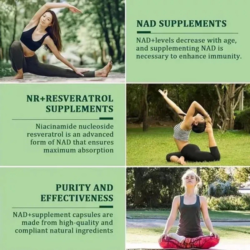 Antienvejecimiento Celular Avanzado: Al elevar los niveles de NAD+ y activar las sirtuinas, este suplemento apoya la reparación del ADN y promueve un envejecimiento saludable a nivel celular.