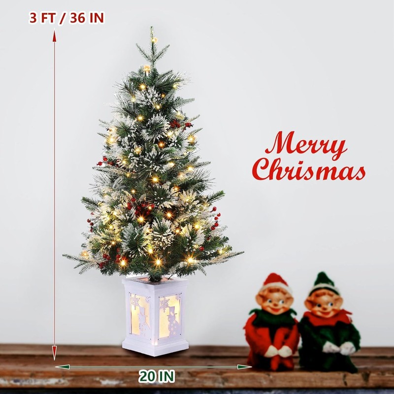 - 【Enchanting Miniature Holiday Centerpiece】Measuring a delightful three feet in height, this perfectly proportioned Christmas tree creates a magical atmosphere in any room. The realistic branches feature meticulously arranged faux foliage and charming seasonal embellishments like glitter-dusted pinecones and crimson berries. Its space-conscious design transforms tight corners, office desks, or apartment balconies into festive showpieces without overwhelming your living space.