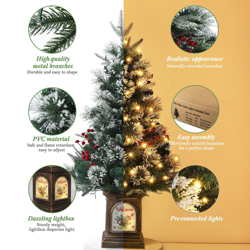 - đŸăPremium After-SalesăDesigned for both indoor and outdoor use, easy assembly - simply take the tree out of the box, adjust the branches, and insert the batteries for instant decoration. Each product measures: 22"D x 22"W x 36"H, weight: 6.4 lbs. If you have any questions, feel free to contact us and we'll provide you with premium after-sales service. :)