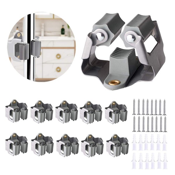 3-H Mop and Broom Holder Wall Mount, Broom Holder Wall Mount, Broom Holder 10 Pack for Garden Garage up to 1.45 Inch(grey)