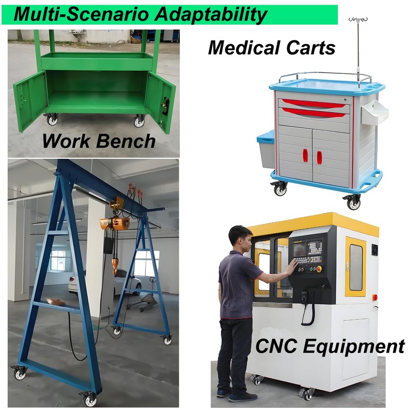 • 【Dual Brakes for Maximum Safety】Foot-Activated Locking System, 360° Stability:Simultaneously Lock Wheel Rotation & Swivel Direction; Hospital-Grade:Prevent Medical Carts or Food Racks From Drifting on Slopes