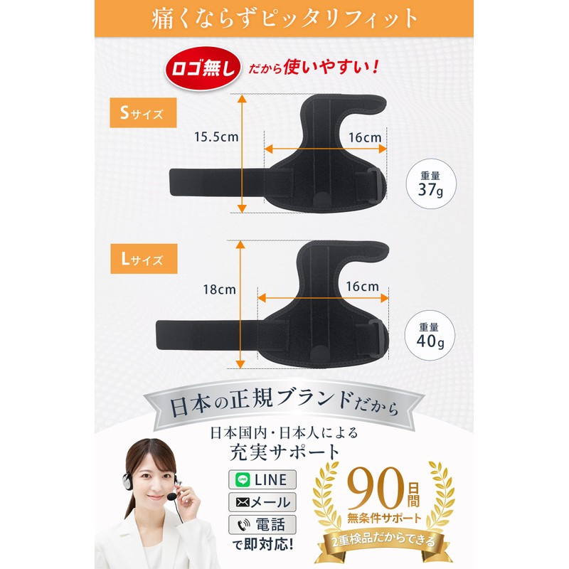 - 【2サイズ展開】左右兼用のSサイズとLサイズ展開で、大人から子どもまで老若男女どんな親指も確実に固定します。