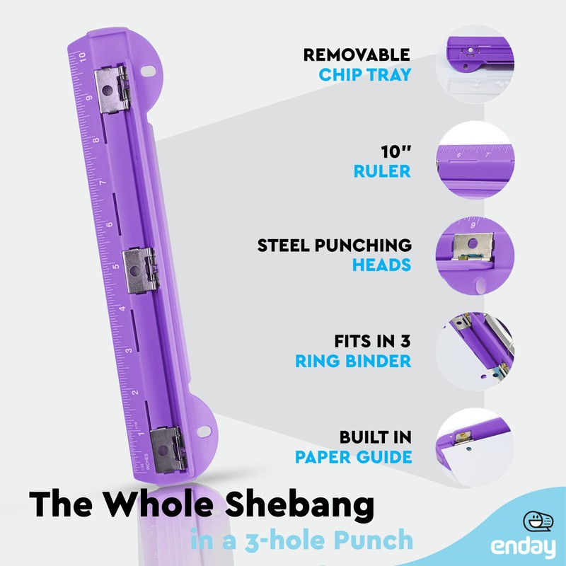 • ✓DESCRIPTION - Our portable 3-hole Paper Punch fits a standard 3 ring binder. The 10-Inch Built-in Ruler is designed for quick measurement. The three hole punch has a built in paper guide for organized sheets. They are great for scrapbooks, card making, confetti, invitations, and all paper crafts and can be used at home, the office and school.