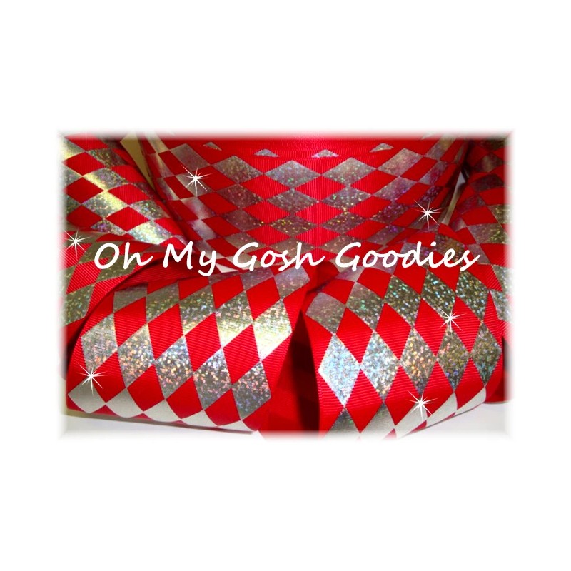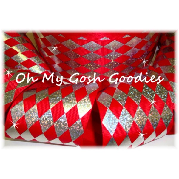3" HOLOGRAM JESTER RED SILVER CHEER BLING GROSGRAIN RIBBON 4 TIC TOC BOW