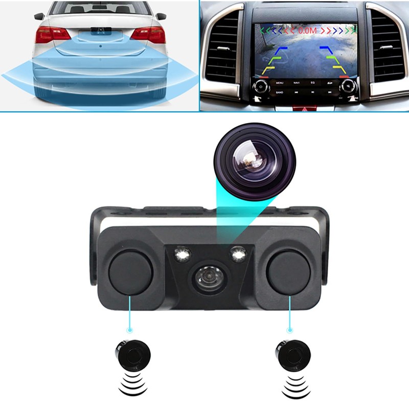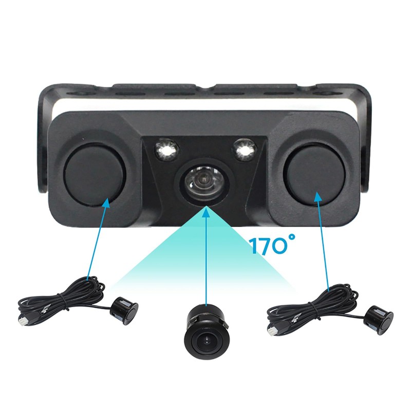 3 in 1 170° Car Reverse Rear View Camera with Backup Radar Parking Sensor Universal