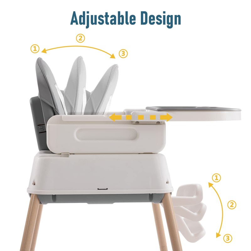 - Multifunctional:used as a baby highchair,helps your baby take the first step toward independent eating;adjust the Height Position,used it as a high chair or play chair;used it as a booster,simply removed the seat and converted into a booster