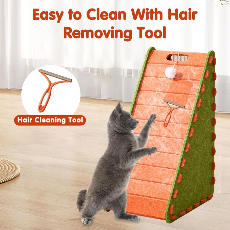 3-in-1 Cat Scratcher for Indoor Cats, Triangle Felt Scratching Board, Vertical Small Kitten Scratch Pad & Ramp & Bed, Wall Kitty Scratch Board with Sleeping House, Ball Toys, Cleaning Brush, Orange