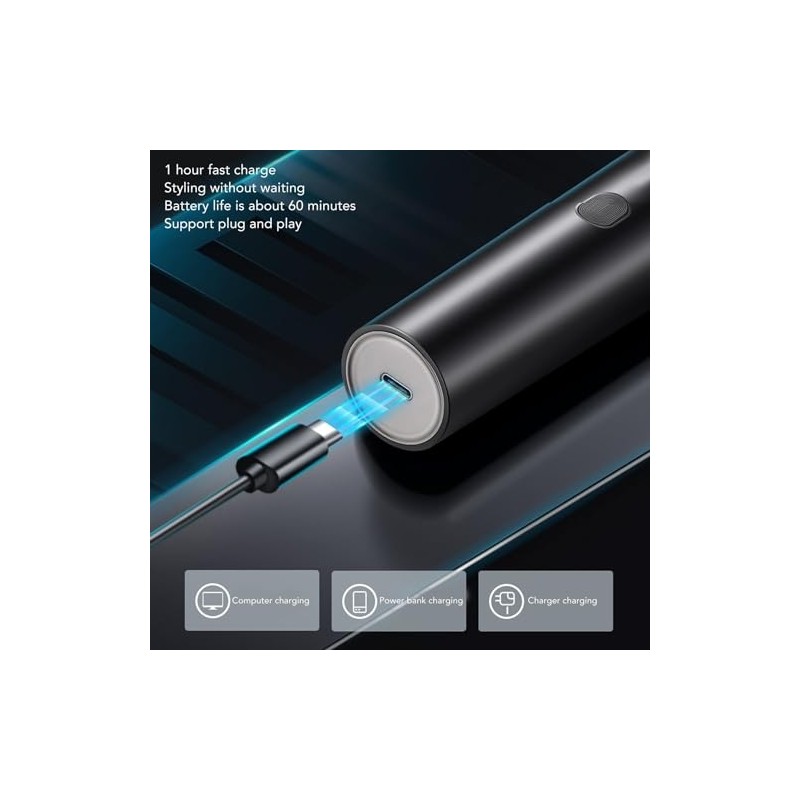[FAST USB CHARGING] The electric trimmer features rapid USB charging allowing you to power up quickly using a power bank charger computer or car USB port. No more waiting around for hours just plug it in and get back to grooming in no time. for travelers and busy professionals who need a and fast charging solution.
