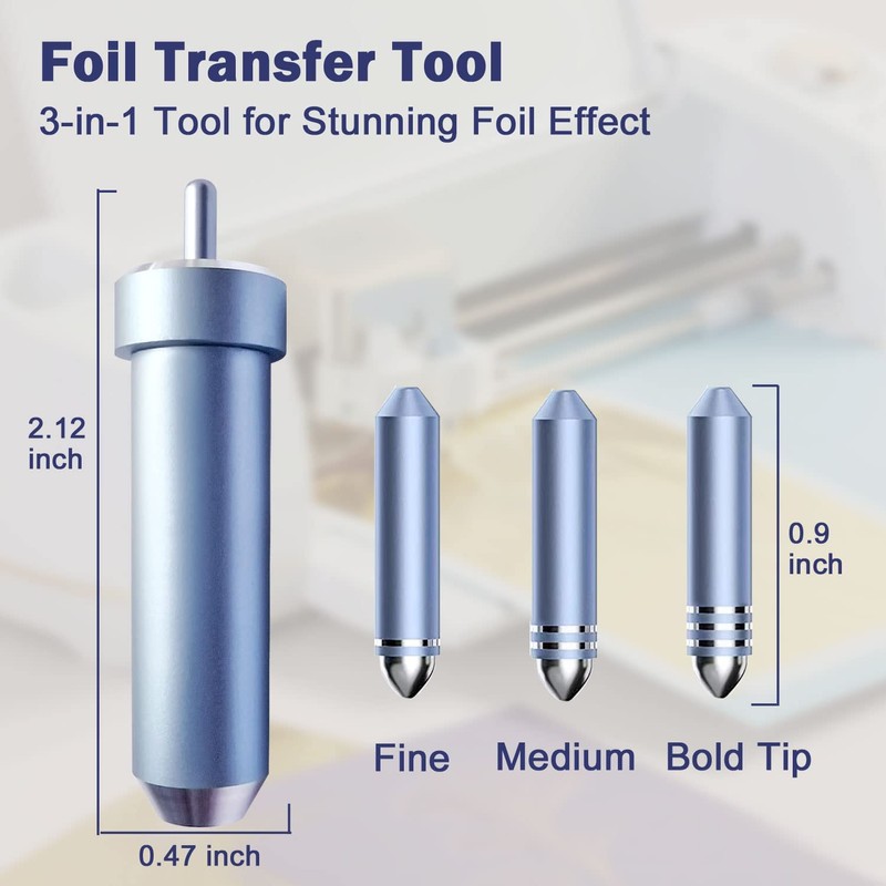 - 【3-in-1 Premium Tool】The foil transfer kit comes with a housing as well as 3 different sizes of blades, including fine, medium, and bold, enabling you to build stunning foil effects while creating. Meanwhile, the foil transfer tool makes your DIY more professional, giving your projects a more three-dimension and advanced look.