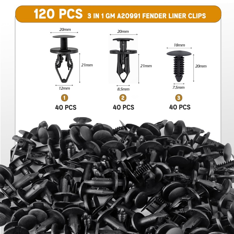 UNIGT 3 in 1 GM A20991 Fender Liner Clips Compatible with 11589292 Bumper Fastener Rivet 21030249 Door Trim Panel 1605396/1595864 GMC Trucks Buick Plastic Push Pins