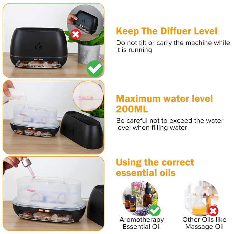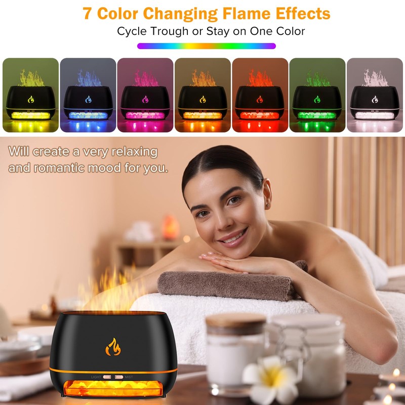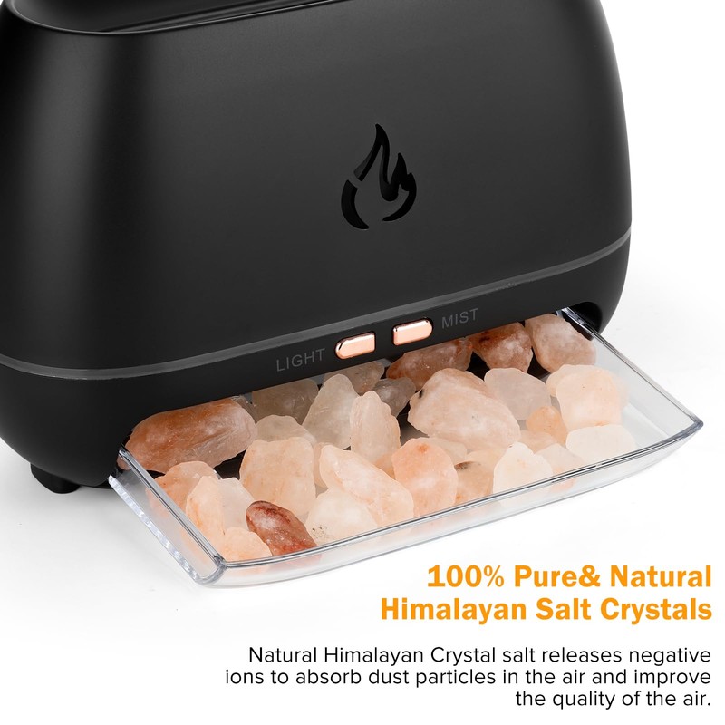 3-in-1 Himalayan Salt Rock Scent Diffuser, Ultrasonic Essential Oil Diffuser, Simulation Flame Diffuser, 7 Colors Changing Oil Diffuser, Black Aroma Diffuser 200ml.