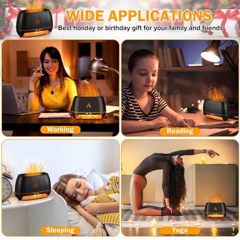 • 【Ideal Gift Choice】This essential oil diffuser, with its unique flame design, complements any home decor. It can be placed in your bedroom, attic, office, or any other desired location to mask pet odors or smoke. This air humidifier serves as an exceptional gift for family members, friends, or loved ones during birthdays, Christmas, Halloween, or other holidays, promoting relaxation and enjoyment.