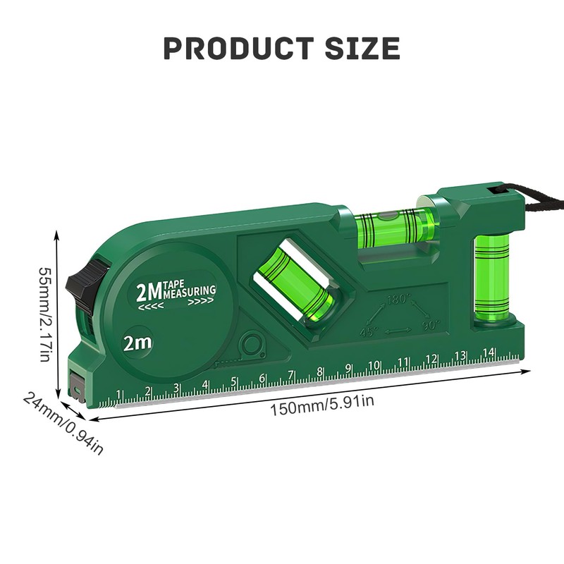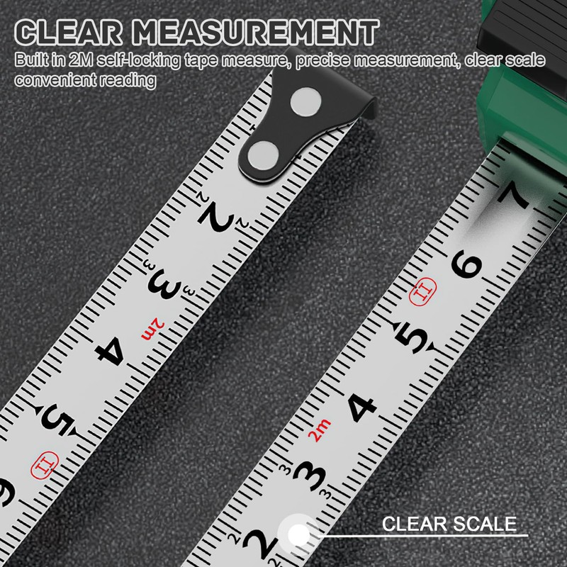 - Built-in tape measure: built-in self-locking 2m tape measure with clear scale and easy to read, with zero point correction hook for more accurate measurements.