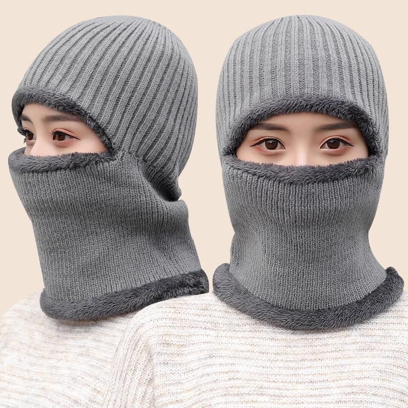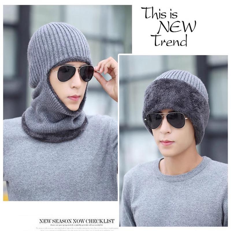 3 in 1 Men's Women's Winter Warm Fleece Hat With Neck Collar Ski Mask full face Multifunctional Caps NEW Christmas gift, New Year gift - Color: gray