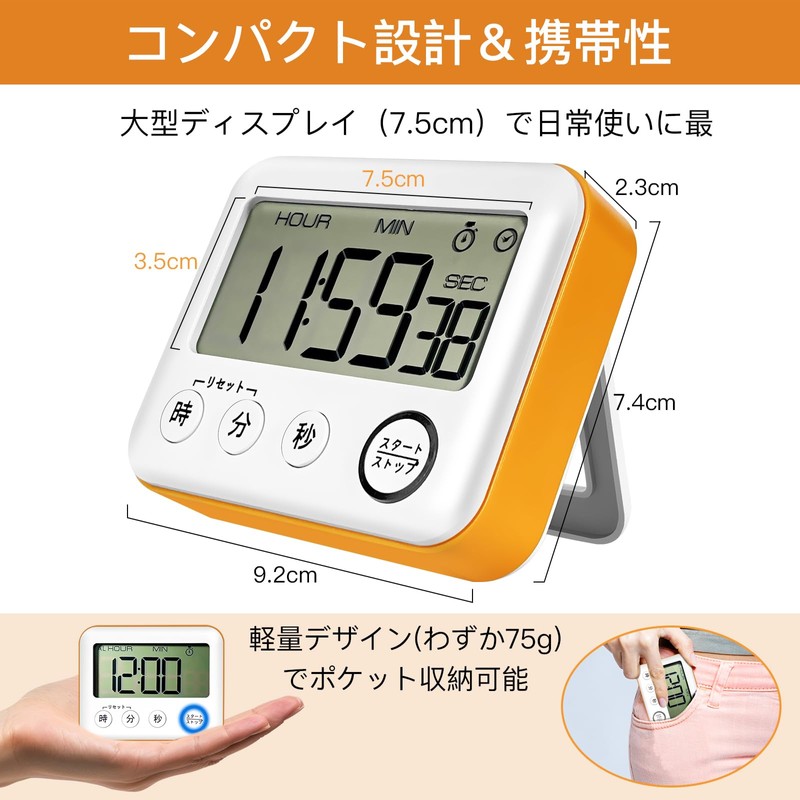 - High Visibility Display: The large 3.0 x 1.4 inches (7.5 x 3.5 cm) screen can be seen even at a distance. High-definition LCD screen allows for clear number outline and suitable for seniors and children It is useful for all kinds of daily life, from monitoring concentration while studying or working, to keeping track of cooking time