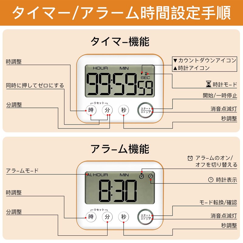 - 【3-in-1 Multi-Function Timer】Designed with integrated clock (12/24 hour display), alarm, and timer. Press the start/stop key 1 time; switch between digital clock and alarm settings instantly, and press "3 seconds" to automatically enter timer mode. From measuring the interval of sports to managing cooking time, you can use it according to the scenes with intuitive operation. The magnet on the back and standing stand can be used for both "wall mounting" and "desktop" use, maximizing your work efficiency