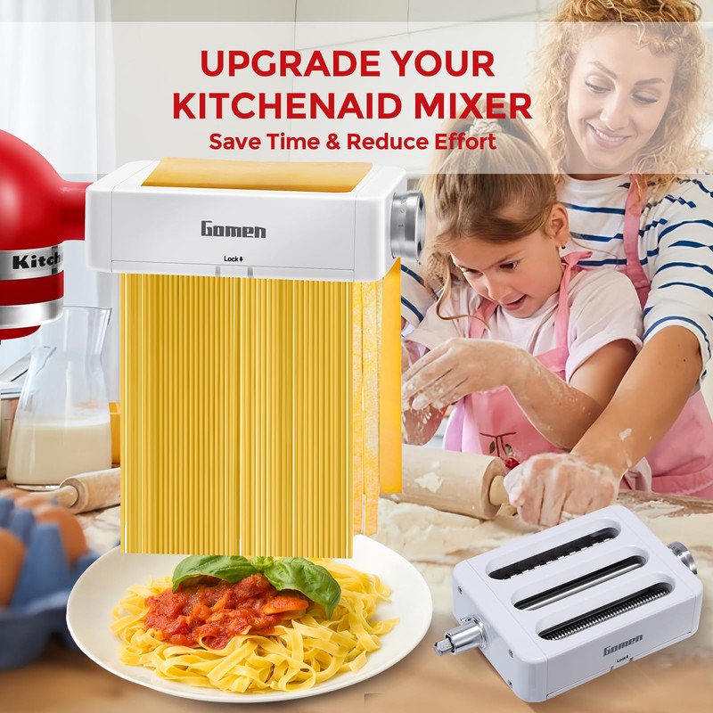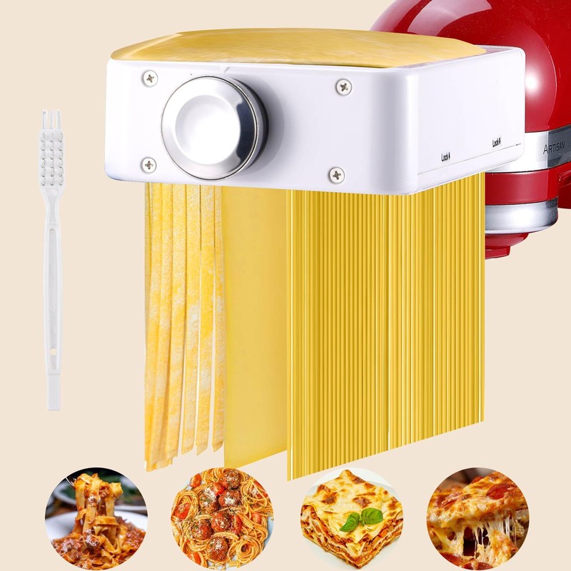 - Pasta Attachment for KitchenAid Mixer: Effortlessly attach to any KA stand mixer to smoothly roll dough and cut pasta into spaghetti, fettuccine, and lasagna. Perfect for elevating your family dinners, romantic date nights, and holiday feasts with authentic homemade pasta. This kitchen aid pasta attachment for kitchenaid stand mixer transforms your mixer into a versatile homemade pasta maker.