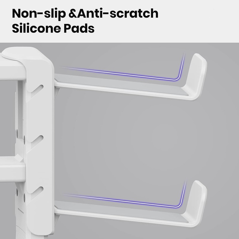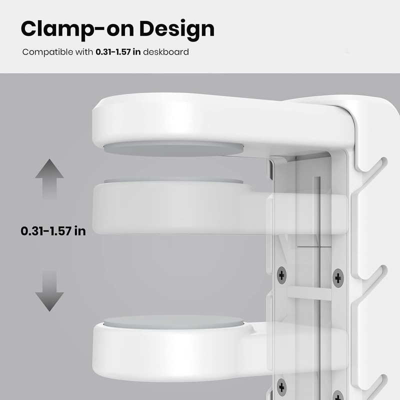 3 in 1 PC Gaming Headphone & Controller Holder, Headphones Hanger Adjustable Rotating Arm Clamp,Headphone Stand Under Desk, Universal Headset Controllers Hook with Cable Organizer-Black (White)