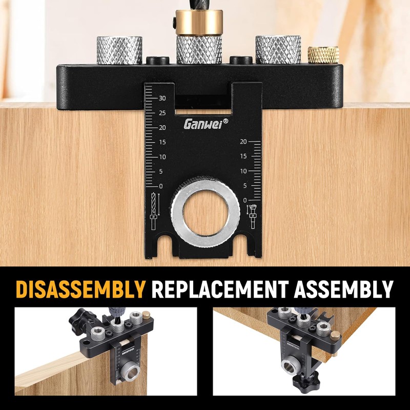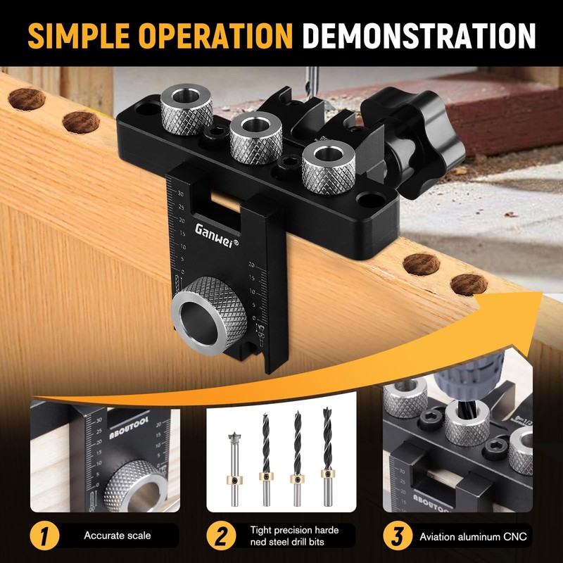 - 【Easy to use】: precision screw holes, multi-choice drill guide, all metal parts, so no deflection jig. Angle, side or surface, T, L connections, etc. can be quickly and accurately completed to improve the efficiency of your different drilling needs. Suitable for furniture construction, kitchen equipment, etc.