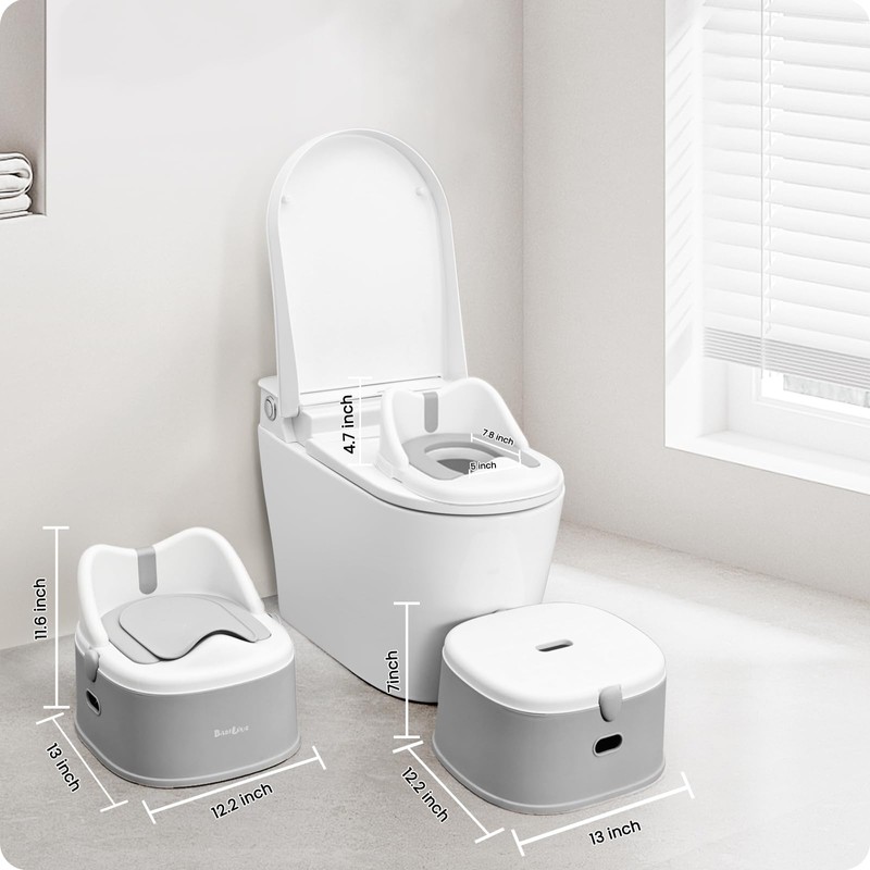 Babilous 3 in 1 Potty Training Toilet, Toddler Potty Training Seat, Baby Potty Trainning Step Stool, Potty Trainer for Boys and Girls, Gray