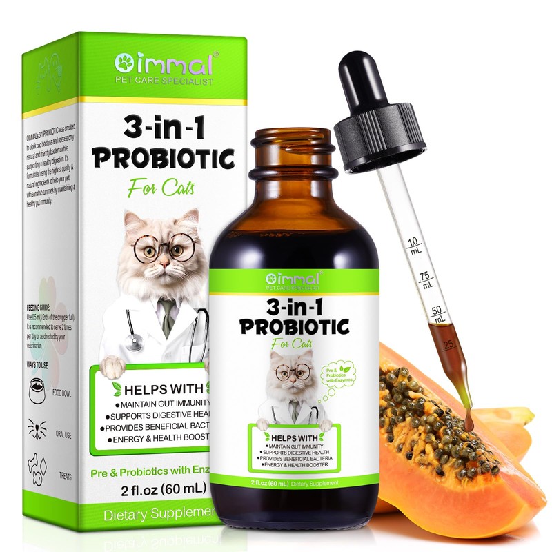 3-in-1 Probiotics for Cats with Digestive Enzymes & Prebiotics – Supports Gut Health, Immune System & Diarrhea Relief – 60ml for Cats of All Ages