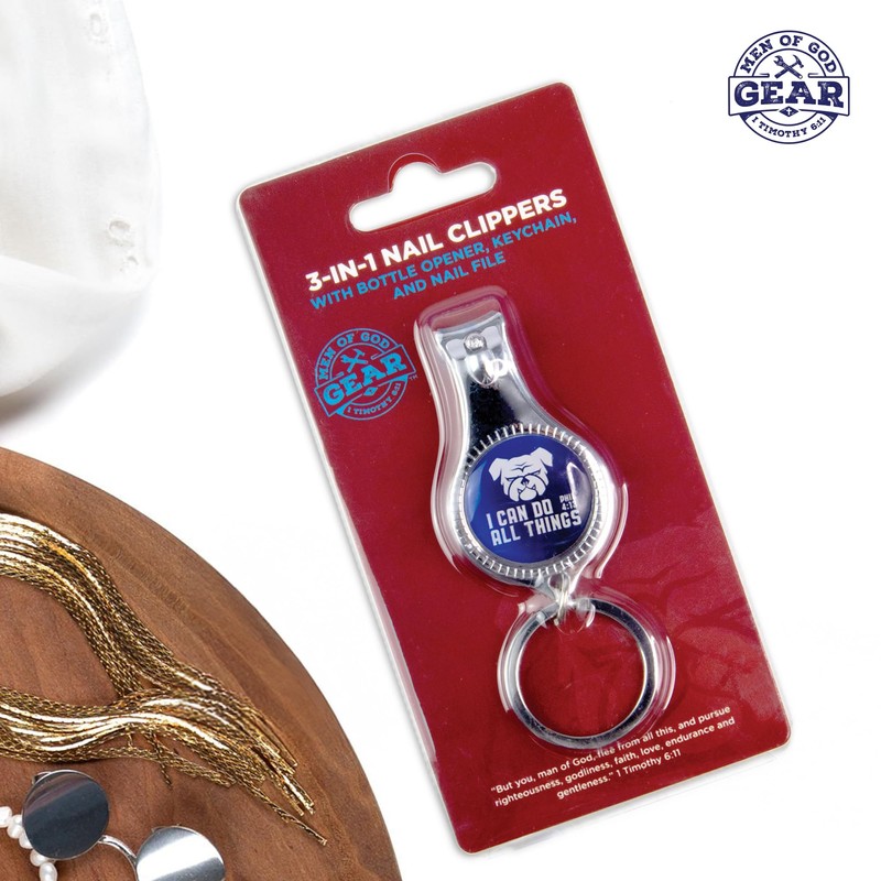 - Multitool Keychain for Men: Combine faith and functionality with a Christian EDC nail clipper for men that works as a bottle opener, keychain, and nail file! With dimensions of 1.25" x 3.5" x 0.5", this mini keychain tool is ideal for daily tasks