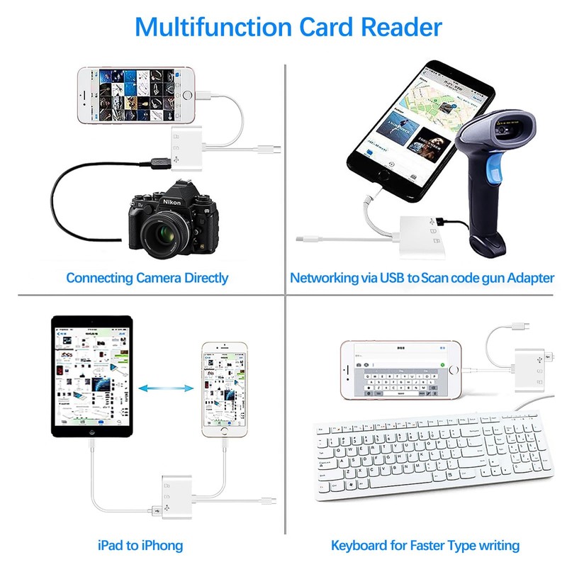 - Multiple Use: The digital camera adapter for Phone is widely used and can be used with various SD cards, micro SD cards and USB devices, including digital cameras, card readers, USB flash drives, MIDI keyboards, mice, USB Flash drives, etc. Hubs, electric piano, drums, audio interface, mixer, monitor, USB microphone, etc. (the maximum current of peripheral devices does not exceed 500mA). When connecting to your Phone's RJ45 port, make sure the RJ45-USB cable connected to the product's USB port fits properly