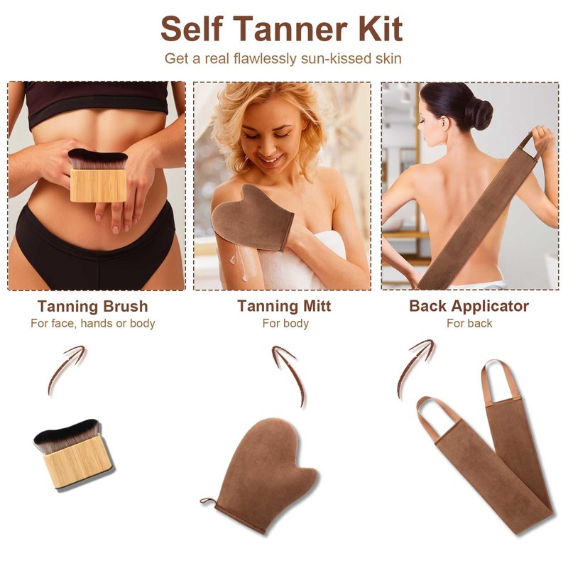 - 【The Perfect Self Tanning Brush with Outstanding Results】 Our tanning mitt and brush is made of ultrafine, soft, and high-density synthetic bristles, which are less likely to fall out and won't cause any stinging sensation when in contact with the body. The tanning brush for body and face head design increases the contact area with the body, enhances the blending effect, and makes the application surface smoother, without leaving streaks or bubbles, for even skin tanning.