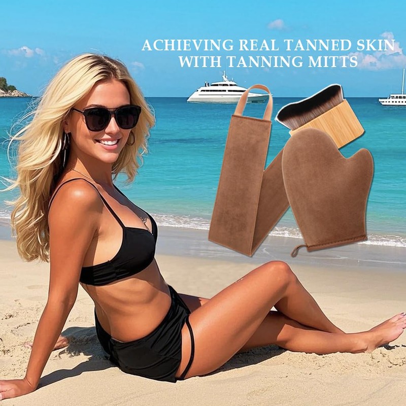 Soft and Comfortable - The fake tan mit and back tanner are made of high-quality velvet material, while the self tanning brush is made of ultra-high density synthetic fibers, so you will feel comfortable when in contact with your skin.