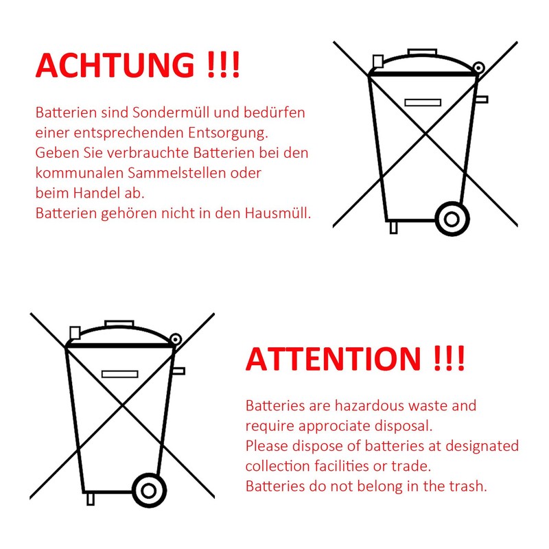 - Three AAA batteries (not included) are required for operation.