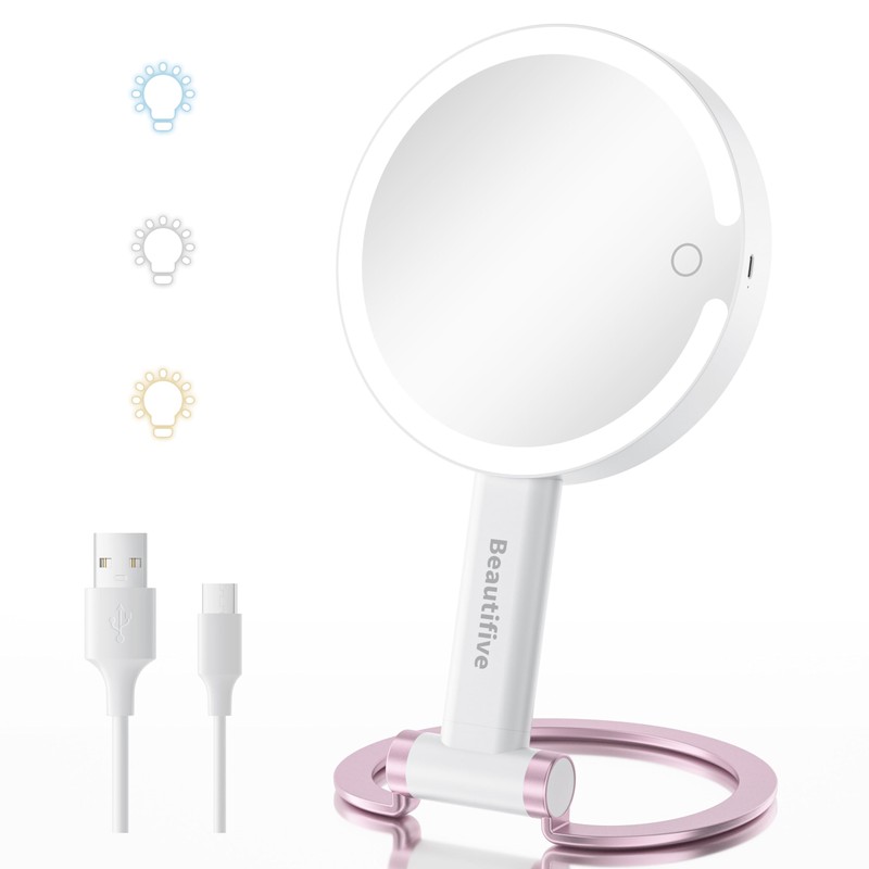 - 3 IN 1 Multipurpose Design: Our makeup mirror with lights can be used as a handheld mirror, hanging mirror and desktop mirror. It features a detachable base, making it easy to remove and carry. It also supports 360° free rotation, allowing you to adjust the mirror’s angle for the best viewing position, ensuring every detail is perfectly visible. Whether at home or traveling, you can use it with complete ease and flexibility.