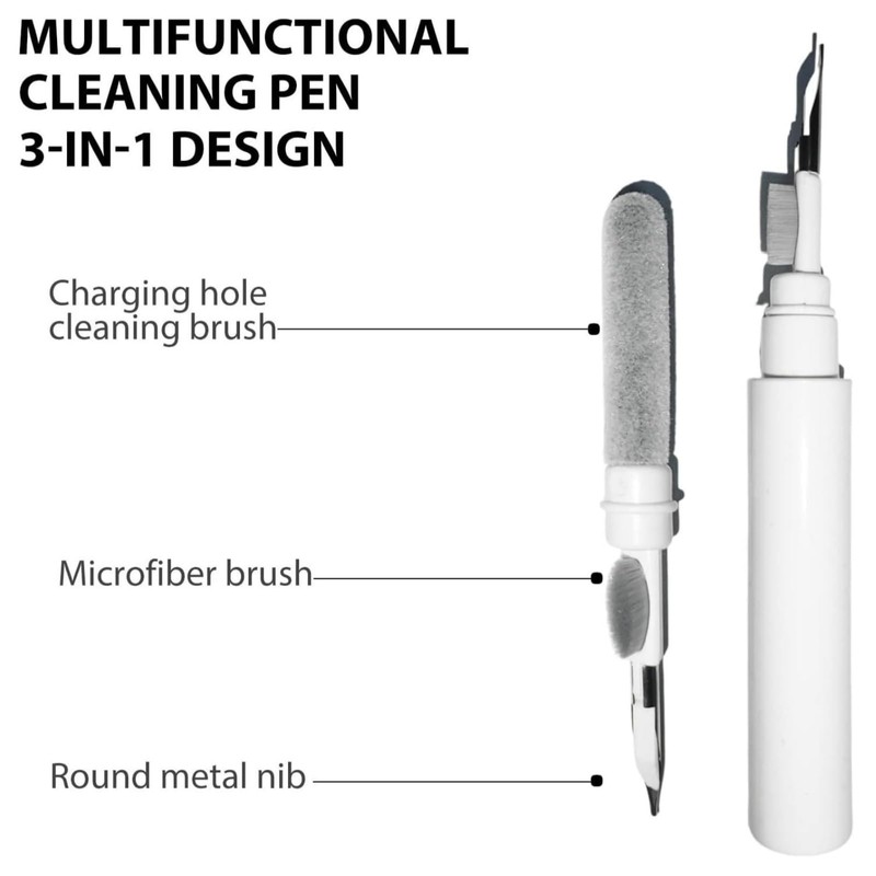- 【3 in 1 Design】Silicone design with Cleaning Pen hard Protective Cover.The cleaning pen is a multifunctional tool that can help you keep your headphones clean and hygienic. The metal tip can clean the stubborn stain in the gap of the earbuds or the charging case; the flocking sponge can wipe off the dust in the charging case without damaging the surface; the hard high-density brush can remove the dirt on the sound outlet hole of the earbuds and improve the sound quality.