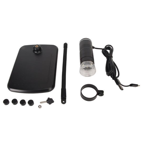 1、3 IN 1 INTERFACE: Microscope camera with USB, Micro USB, Type C interface, with a wide range of compatibility, compatible for Android and for Windows system. 2、1000X HIGH DEFINITION:Digital microscope with 640x480 camera resolution, magnification up to 1000x, clear presentation. 3、BRIGHTNESS ADJUSTMENT: LED halo light with brightness adjustment control, flexible arm of microscope with observation pad includes scale markings for easy measurement or use as handheld microscope. 4、APPLICABLE PEOPLE: Both useful and interesting for students, collectors, testers and anyone interested in exploring the microscopic world. 5、COMPATIBLE: Handheld microscope compatible with cell phones, tablets, computers, suitable for repairing electronic equipment, circuit boards, industrial design boards, antique identification, etc.